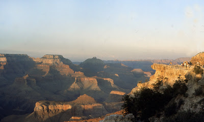 The Grand Canyon is immense. The 6 million year old Grand Canyon is made up of buttes, plateaus and mesas that cover two billion year old igneous and metamorphic rock. This Northern Arizona national park has earned its rightful place as one of the "seven wonders of the world." As one of our most popular national parks, the Grand Canyon is host to about four million local and international visitors each year. The canyon lands of Northern Arizona's Grand Canyon are nature's most well known and timeless creation. Human life is too short to notice the dramatic changes that have formed the canyon over the millions of years it has taken to carve the gorges, buttes and crevices of the Grand Canyon. The imposing massiveness of what is called "one of the seven wonders of the world," lures tourists to its rim by the thousands. Different from Zion National Park where you walk on the canyon floor and look up to see magnificent monoliths, at the Grand Canyon we stand above the rim and peer down into the enormous gap in the earth.